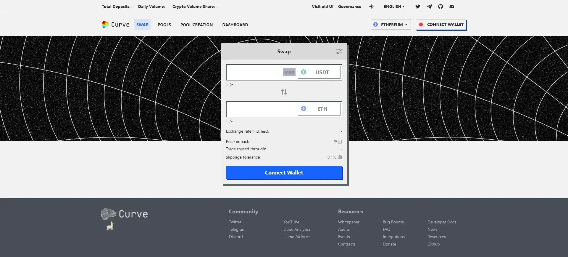 对于关注波动性的交易者来说,Curve 是最好的 DEX 之一。它是另一个采用 AMM 的 DEX,与 Uniswap 一样,它使用去中心化的以太坊网络。然而,Curve 有一些独特的功能。它提供自己的代币 CRV,用于治理并赋予持有者投票权。