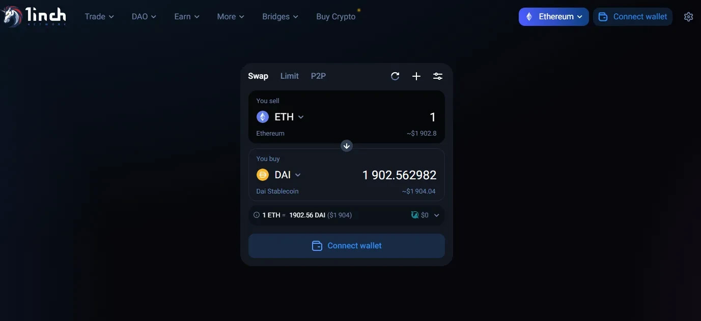 榜单上的第七个平台是 1inch,它提供便捷的加密货币交易服务。它是榜单上最好的 DEX 聚合器。该平台在每次交易前都会扫描多个 DEX,并为用户找到购买代币的最低价格。1inch 的流动性池允许用户质押代币并获得 1INCH 代币奖励。这些代币的持有者可以参与平台投票。