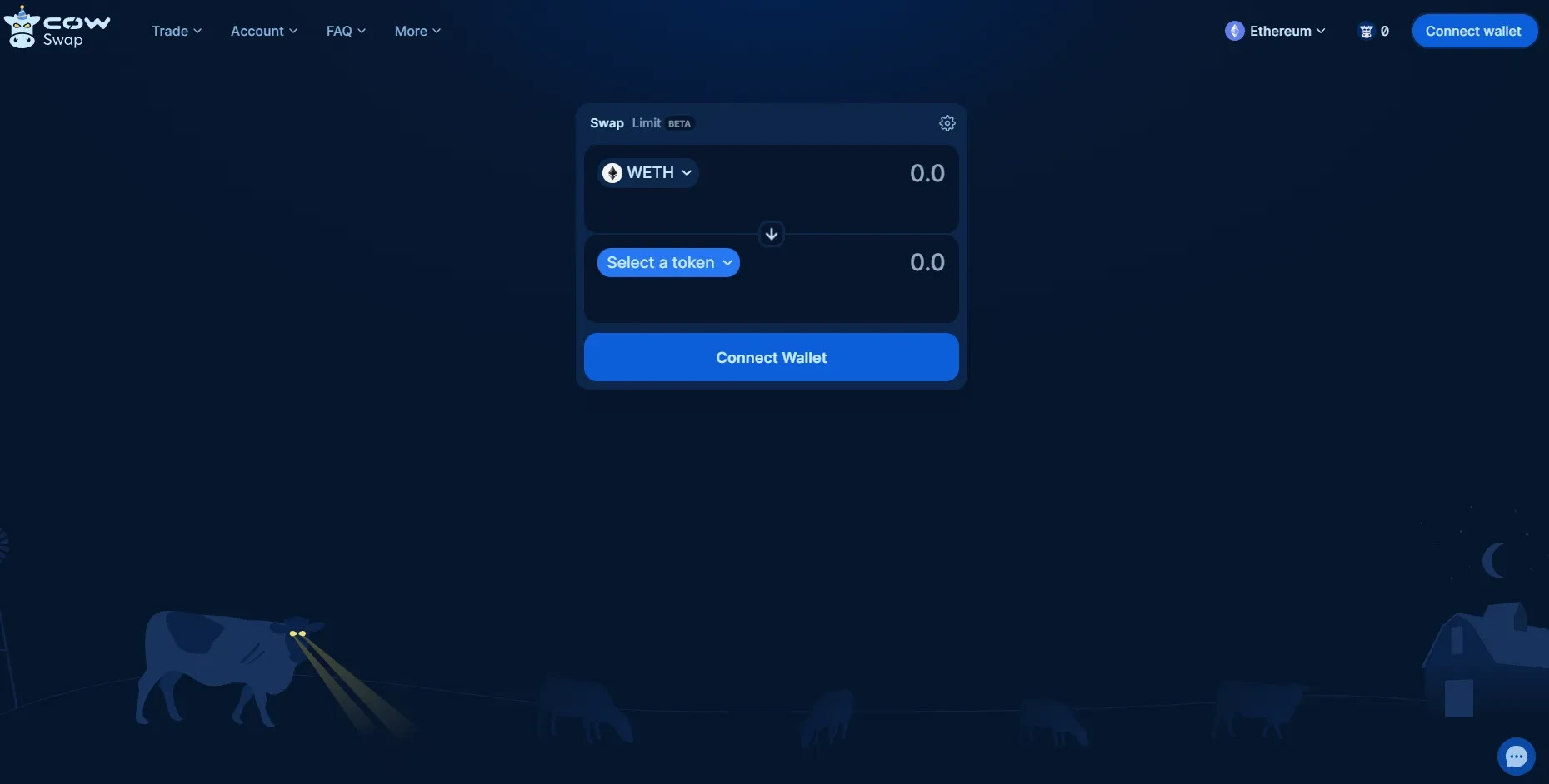 榜单上的第十一个去中心化交易所是 CowSwap,它交易基于以太坊的代币。它匹配供需,防止滑点,并允许免佣金交易。在点对点系统中未匹配的订单将被发送到基础版 AMM这两种方式在 CowSwap 上均可使用。用户可以在所有聚合器和交易所以最优价格在链上执行交易。