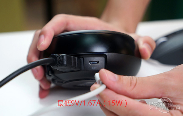 接线方面,使用HDMI与显示器连接好,然后再接入电源。如果键盘和鼠标是有线的话,直接插入两个USB接口即可。这里需要说明的是,三星DeX电源规格分别支持9V/1.67A(15W)、9V/2A(18W)和12V2.1A(25W)三种输入功率,国行版会在包装盒内附赠9V/1.67A(15W)充电器和充电线一套。