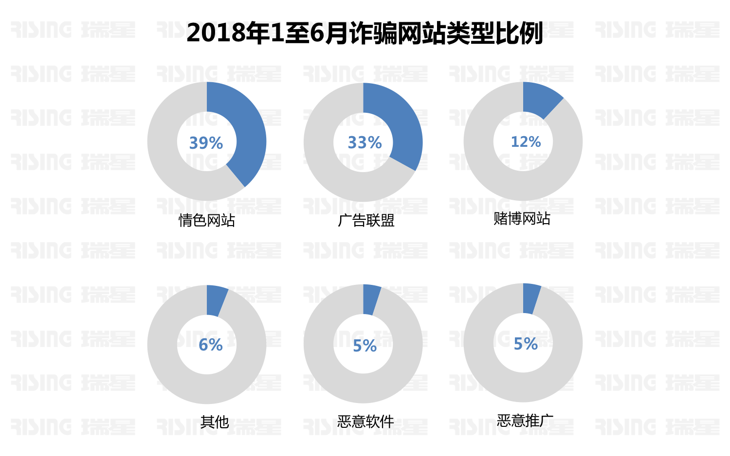 报告期内,类诈骗网站占39%,位列第一位,其次是广告联盟类诈骗网站占33%,赌博类诈骗网站占12%,分别为二、三位。