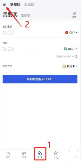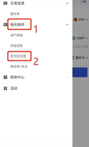 1、打开欧易okex,点击页面下方买/卖按钮,进入交易区,点击左上角按钮,选择相关操作 收付款设置,即可看到已有的收付款方式。