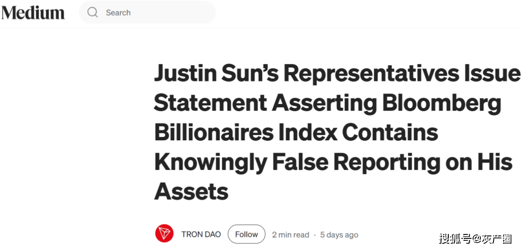 8月12日,孙宇晨代表在波场社区(TRON DAO)的一篇博客文章中表示,8月11日的彭博亿万富豪指数榜单中孙宇晨的资料页“发布了不准确的数据,严重且危险地歪曲了孙宇晨的资产[情况]”。