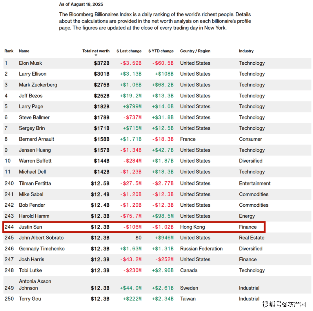 8月11日,彭博社在其亿万富豪指数榜单中更新了孙宇晨的资料页,相关信息源于其“对孙宇晨代表于2025年2月提供的财务信息的分析”。