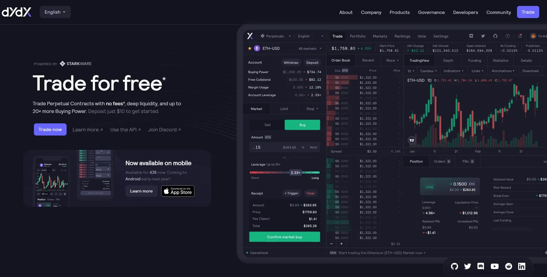 与大多数其他选择不同,dYdX 是一个带有订单簿的去中心化交易所 (DEX)。这使得它成为一种更传统的加密货币交易方式。然而,该交易所也有一些独特的功能。例如,在使用 ETH 开立多头或空头仓位时,它提供高达投资金额 5 倍的杠杆交易。此外,dYdX 以借贷平台而闻名,提供跨保证金贷款和借款服务。这允许用户通过在平台上存储资金来赚取被动收入。活跃交易的资产也可以赚取利息。就交易量而言,dYdX 仅次于 Uniswap。