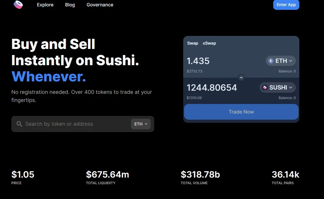 SushiSwap 是加密货币行业最知名的去中心化交易所之一。它基于 Uniswap 平台开发,凭借多种优势跻身最佳去中心化交易所之列。其原生代币 SUSHI 允许通过质押和参与平台治理获得被动收入。SushiSwap 还拥有独特的去中心化交易所架构,可以降低市场中心化程度。