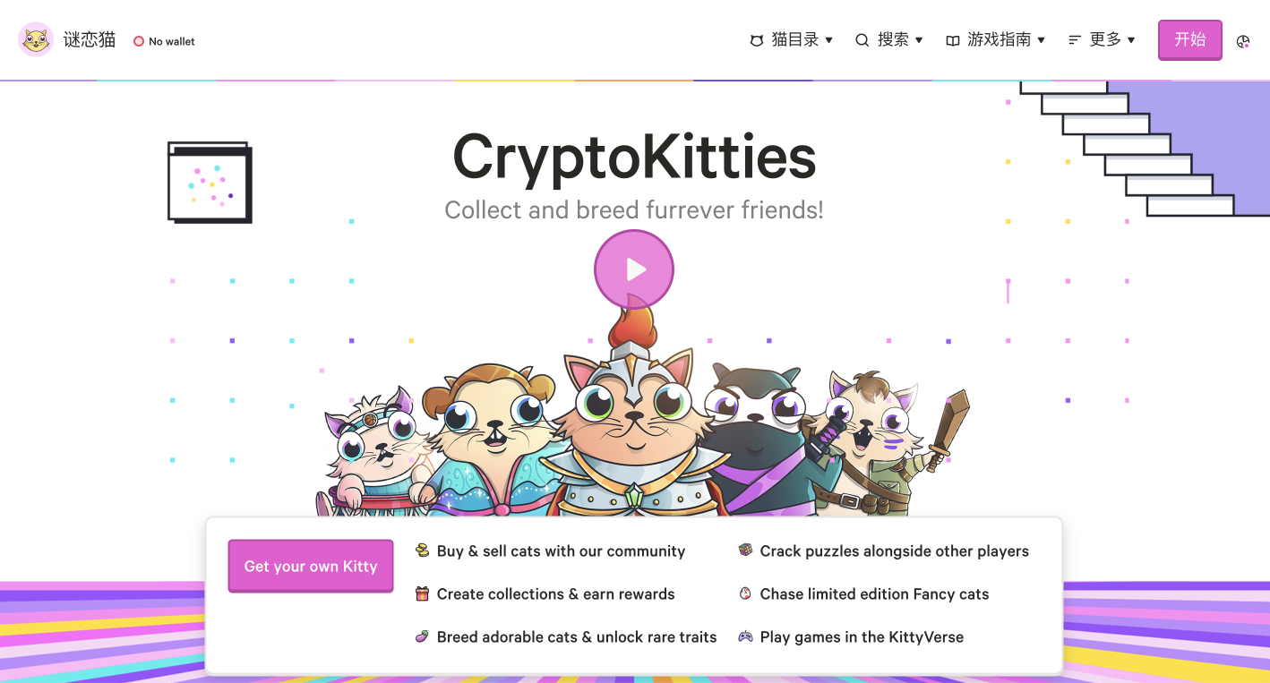 这家神奇的网站名为刚刚上线不久就引起了不小的关注。用户可以在这家网站购买虚拟猫咪,并通过平台与其他玩家进行交易。每只虚拟猫咪都是独一无二的,完全属于个人的,它们无法复制、无法删除,也无法被盗用。加密猫用的就是 NFT 技术,他们给每个猫咪进行特殊的标记编号,让它成为独一无二的猫。