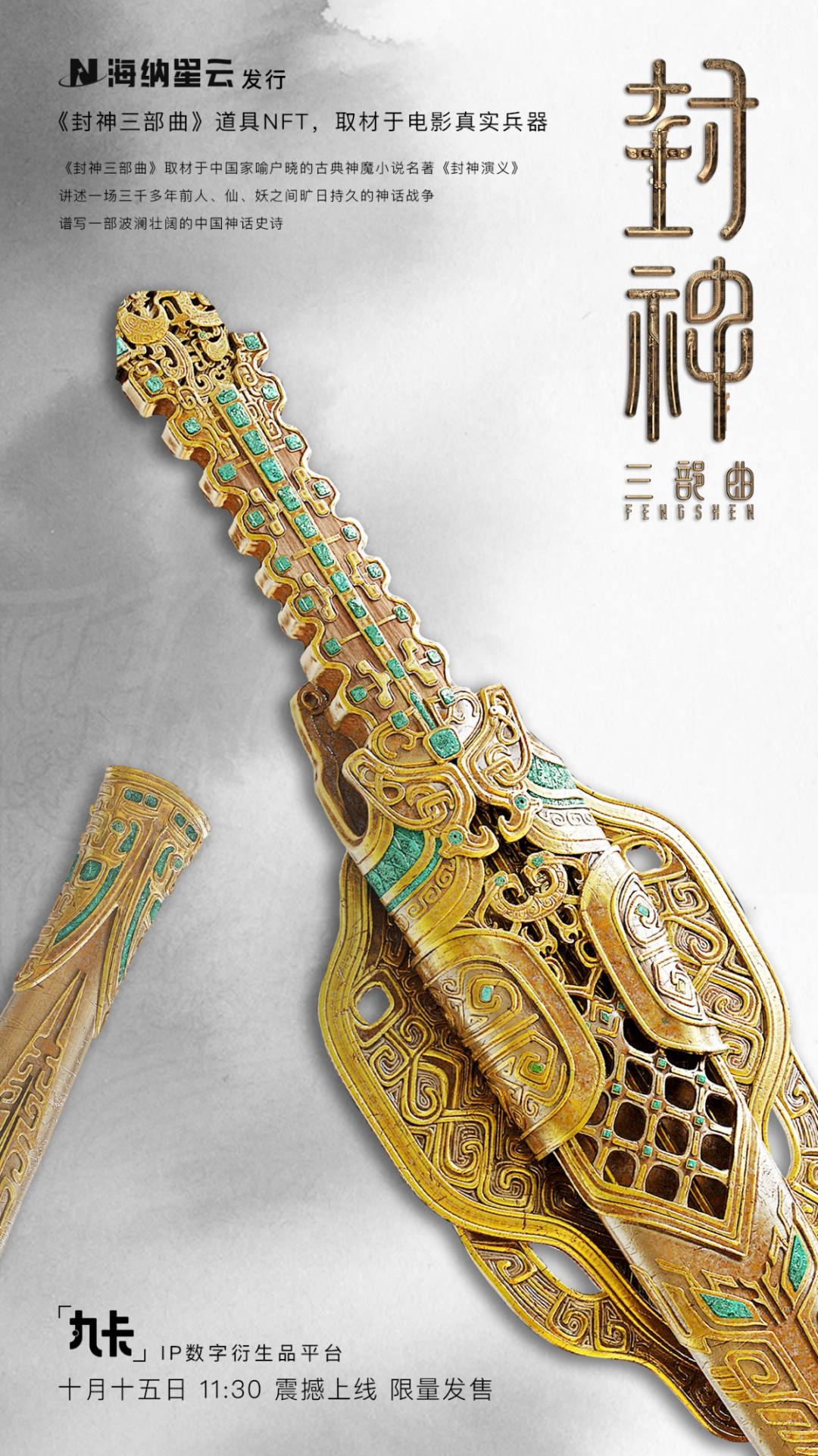 9月30日,海纳星云旗下IP数字衍生品发行平台丸卡上线,推出电影《封神三部曲》首批NFT数字藏品,并限量发售400枚。在产品冷启动的情况下,上线枚数字藏品全部售罄。丸卡平台发售的道具卡牌,均取自电影《封神三部曲》中的真实道具,如青铜纹样。