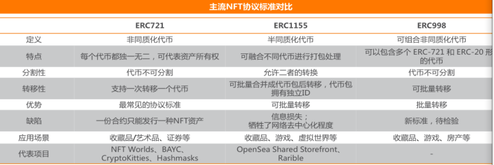 ERC-721 是 NFT 的第一个标准,该标准是以太坊在2017 年提出的,也是目前比较常用的底层标准,其第一个应用是 CryptoKitties 项目。在以太坊ERC-20 标准里,各代币(token)的价值没有区别,符合 ERC-20 标准的 token 可以被任意分割和互换,因此无法追踪每个 token 的交易和流通记录。显然,ERC-20 标准是针对同质化通证的,在该标准下,任意 token 没有差别,无法区分,这就无法满足那些具有独一无二属性的资产的需求。