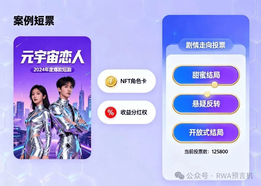 权益绑定:用户购买短剧中的虚拟道具(如“支持主角创业”的NFT),可兑换现实资产的部分权益(如文旅项目的优先入住权、艺术品的限量版画);