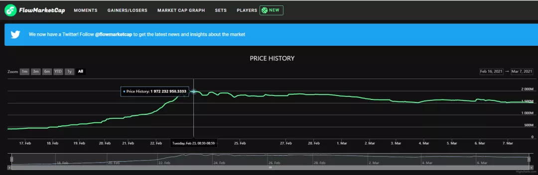 3.3月7日由于NBA TOP Shot官网维修,购买和定价功能受限,导致市场出现恐慌性抛售,卡牌估值一降再降。